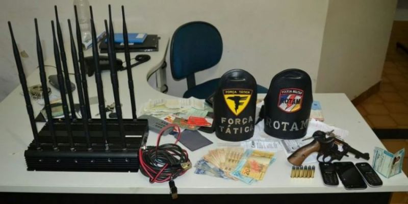 Na abordagem, foi localizado um aparelho bloqueador de sinais e vários matérias de acampamento no interior do veículo. Ao solicitar a documentação, constatou que a CNH apresentado era falsa e suspeito confessou pertencer a uma quadrilha de roubo de carga e onde os outros três envolvidos estavam hospedados.