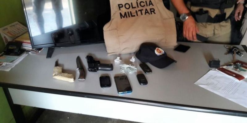 Após os envolvidos informarem sobre dois homens que faziam receptação em Praia Norte, os policiais deslocaram à cidade. Os suspeitos foram encontrados e no local havia uma televisão, uma pistola airsoft, um simulacro artesanal de arma de fogo, uma arma branca, aparelhos de celular e papelotes de maconha.